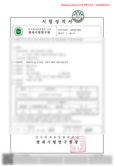 파이어락은 방재시험연구원의 시험 절차에 따라